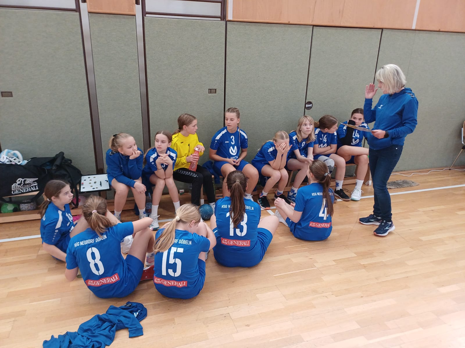 Wenn das Spielfeld 5 Meter kürzer in der Länge und 3 Meter schmaler ist, dann stehen auch die Mädchen der WJD vor taktischen Problemen. So mussten die HSG-Mädels sich in Glesien bei ihrem Auswärtsspiel erstmal den Bedingungen anpassen. Man spürte im Aufbau, dass bereits nach der Mittellinie der Grundaufbau erfolgen musste. Auch bei den Passlängen bedurftes es einer Anpassung. Ein Spiel über die Außenbahnen war durch die fehlende räumliche Breite kaum möglich. Trotz der Kürze des Feldes gelang trotzdem das schnelle Spiel Richtung gegnerisches Tor. Bis zur Halbzeit fand die Mannschaft den Spielrhythmus und führte klar. Wie in der Vorwoche konnte im Block gewechselt werden, so dass die Spielanteile gleichmäßig verteilt werden konnten. Im Vergleich zur Vorwoche war die Fehlerquote diesmal etwas höher, da die Differenzierung bei den Passwegen nicht optimal war.